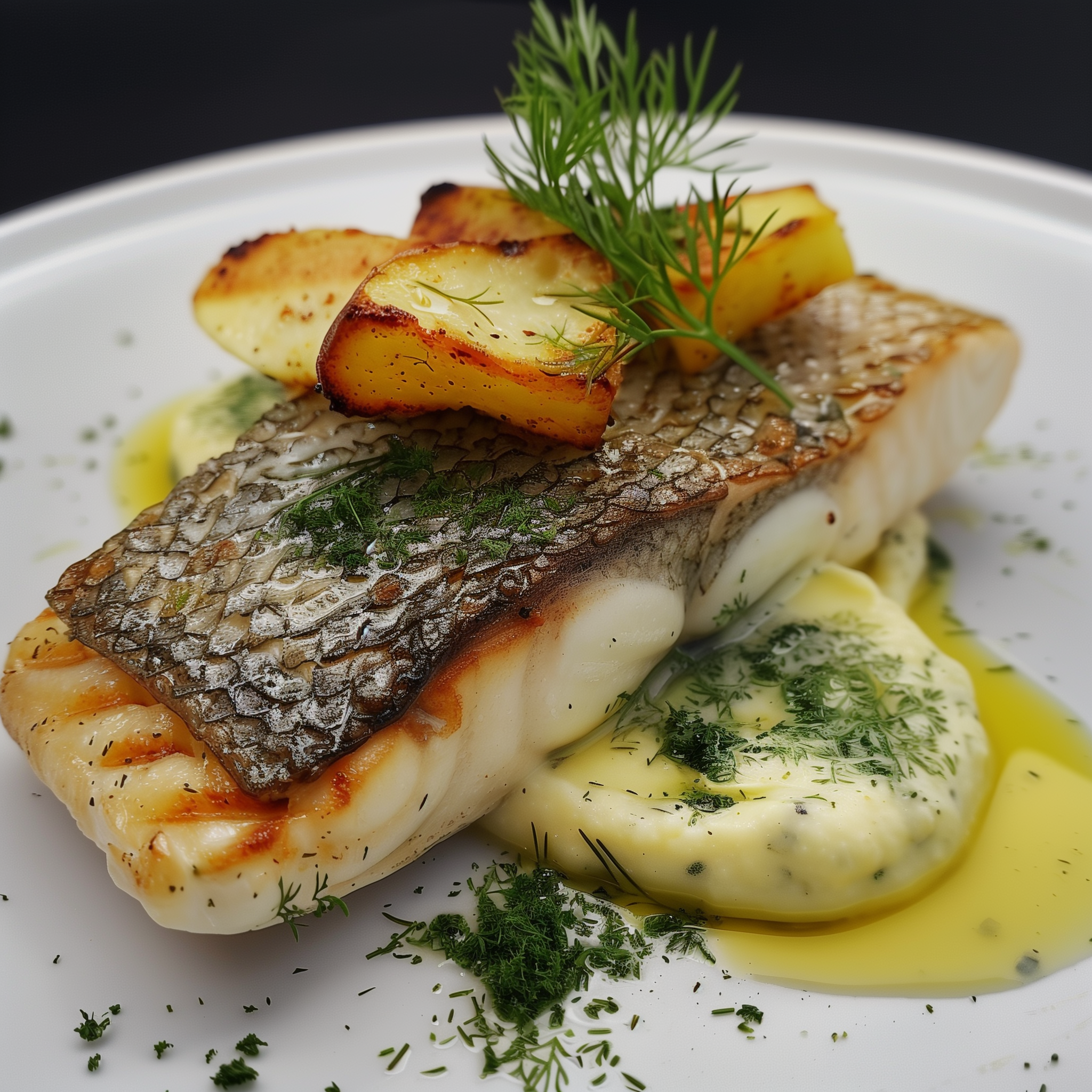 - Lachsfilets mit Erbsen-Kartoffel-Püree und Zitronen-Dill-Sauce servieren.